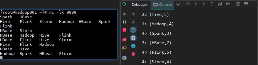 }).keyBy(0).timeWindow(Time.seconds(3)).sum(1).print(); //每隔3秒统计一次每个单词出现的数量