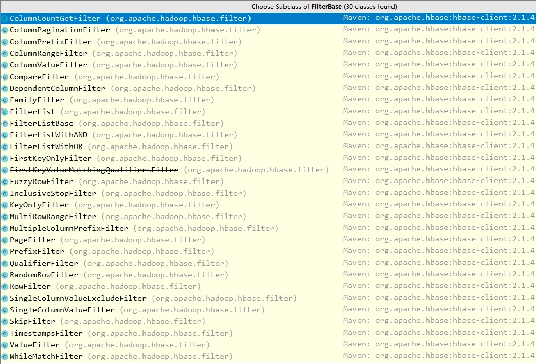 FilterBase 的所有子类过滤器如下: