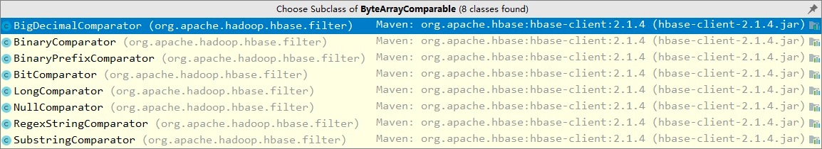 所有比较器均继承自 ByteArrayComparable