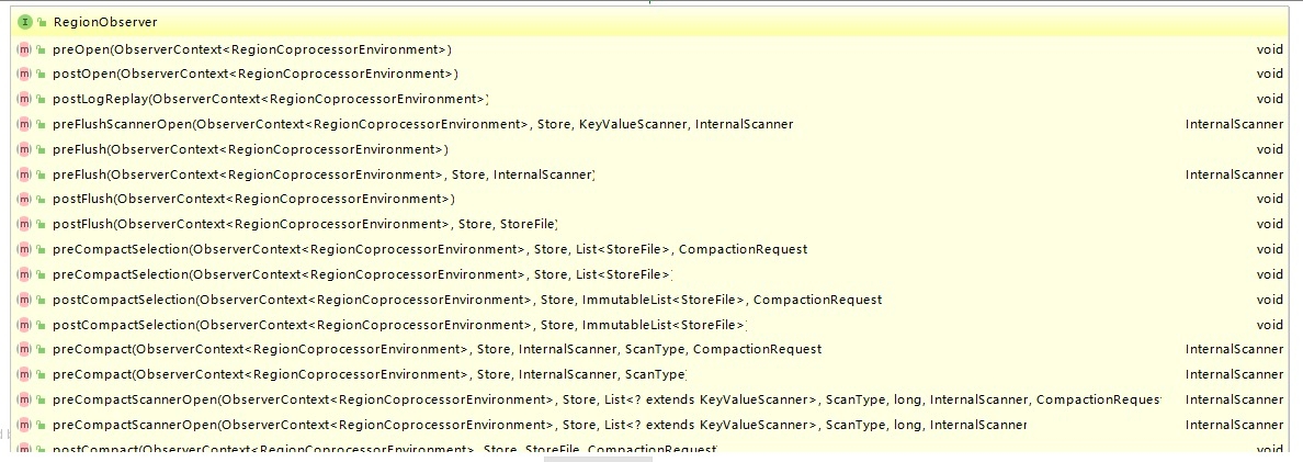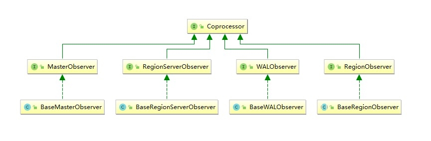 以上四种类型的 Observer 协处理器均继承自 Coprocessor