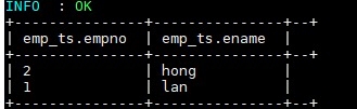 INSERT INTO TABLE emp_ts VALUES (1,"ming"),(2,"hong");