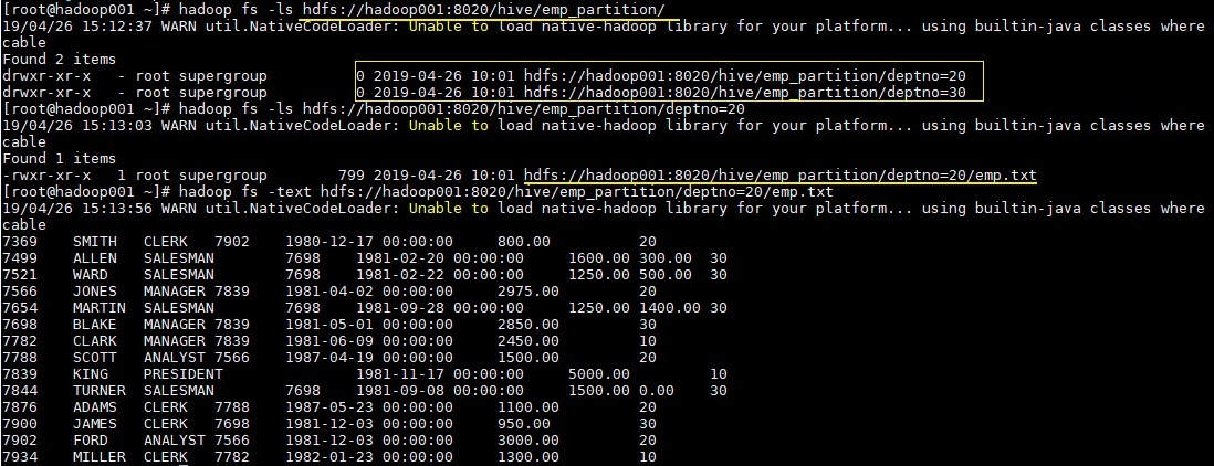 # hadoop fs -ls hdfs://hadoop001:8020/hive/emp_partition/
