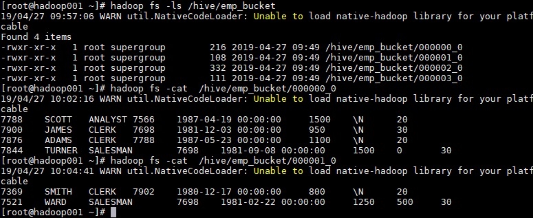 CLUSTERED BY(empno) SORTED BY(empno ASC) INTO 4 BUCKETS --按照员工编号散列到四个 bucket 中