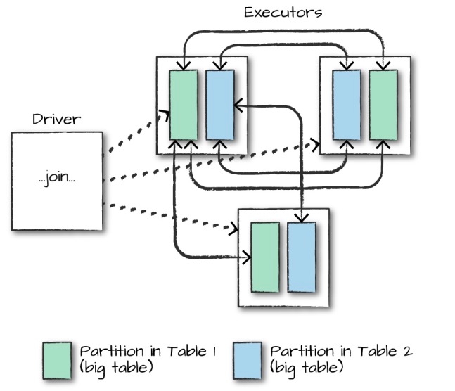 在对大表与大表之间进行连接操作时,通常都会触发 Shuffle Join