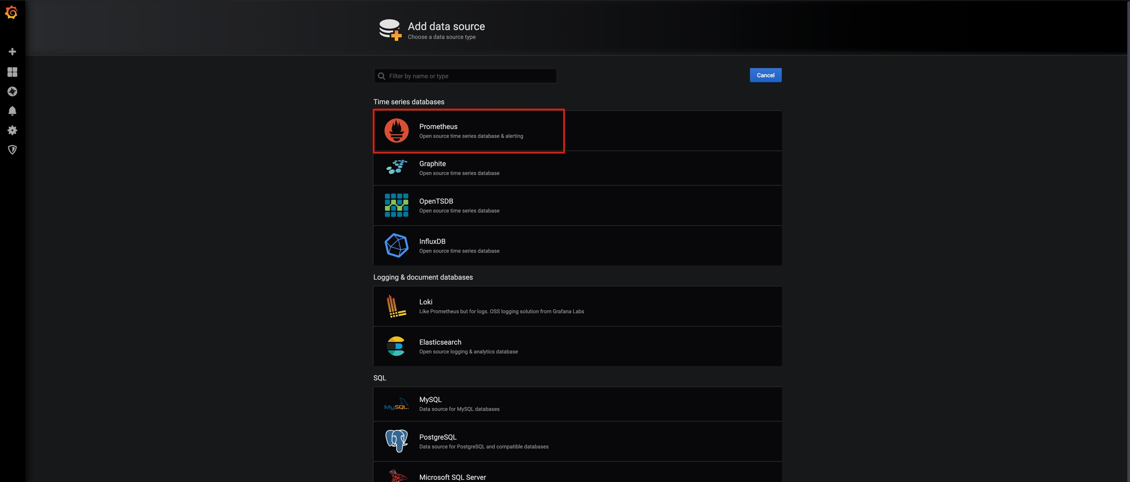 登录之后,选择添加数据源,选择Prometheus。