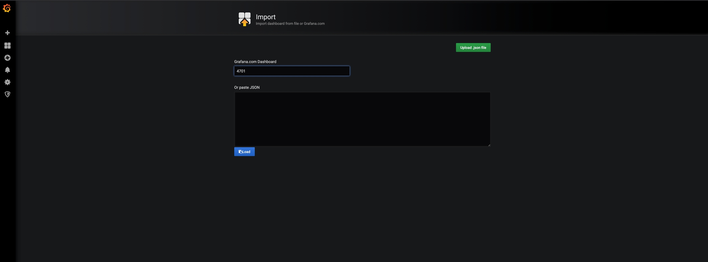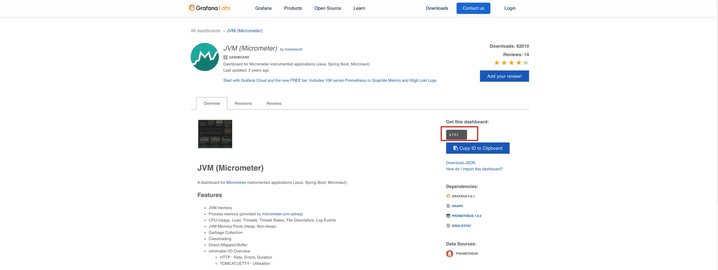 在Grafana.com Dashboard处输入4701。