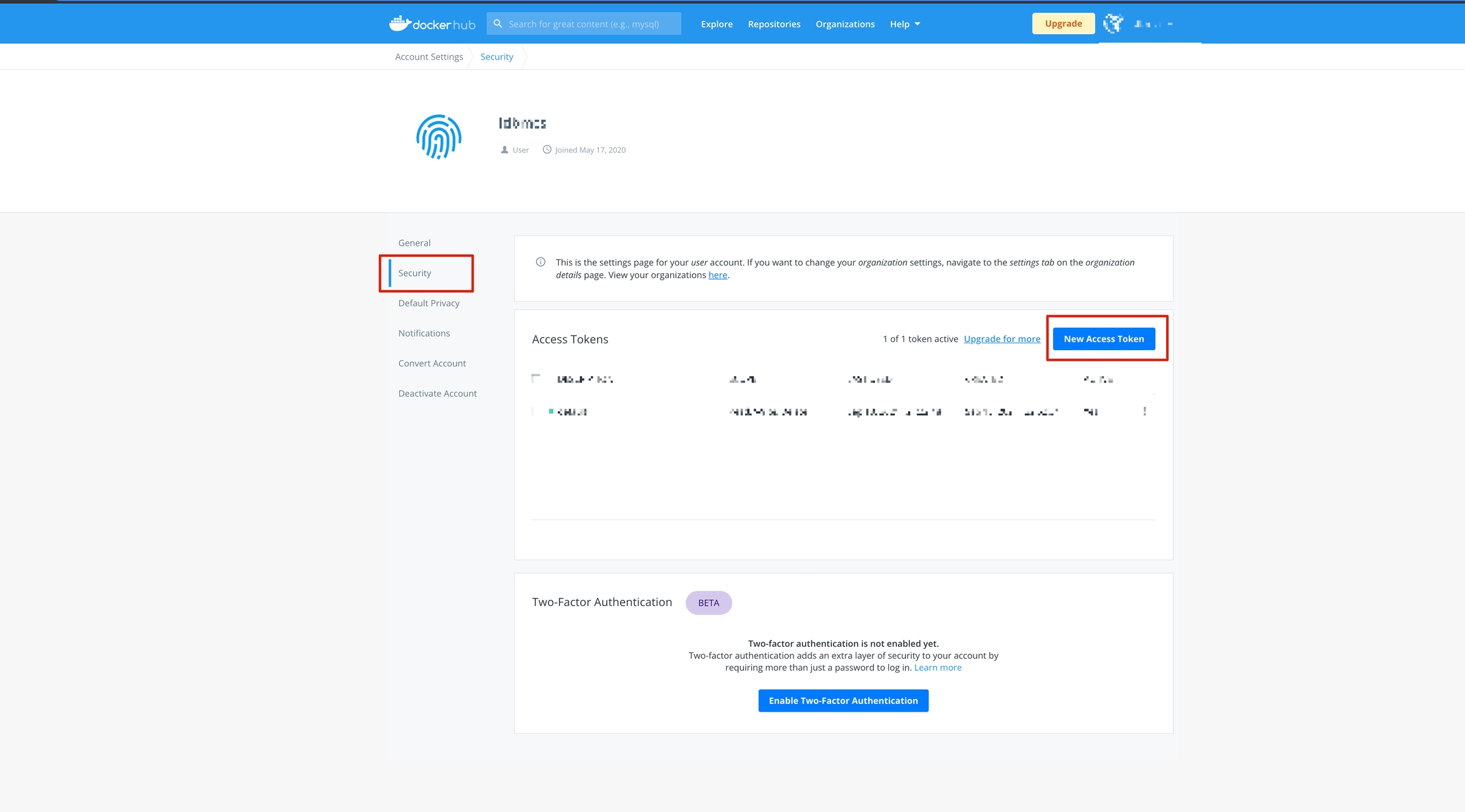 DOCKER_HUB_ACCESS_TOKEN:授权的Token,在用户设置中创建Token。