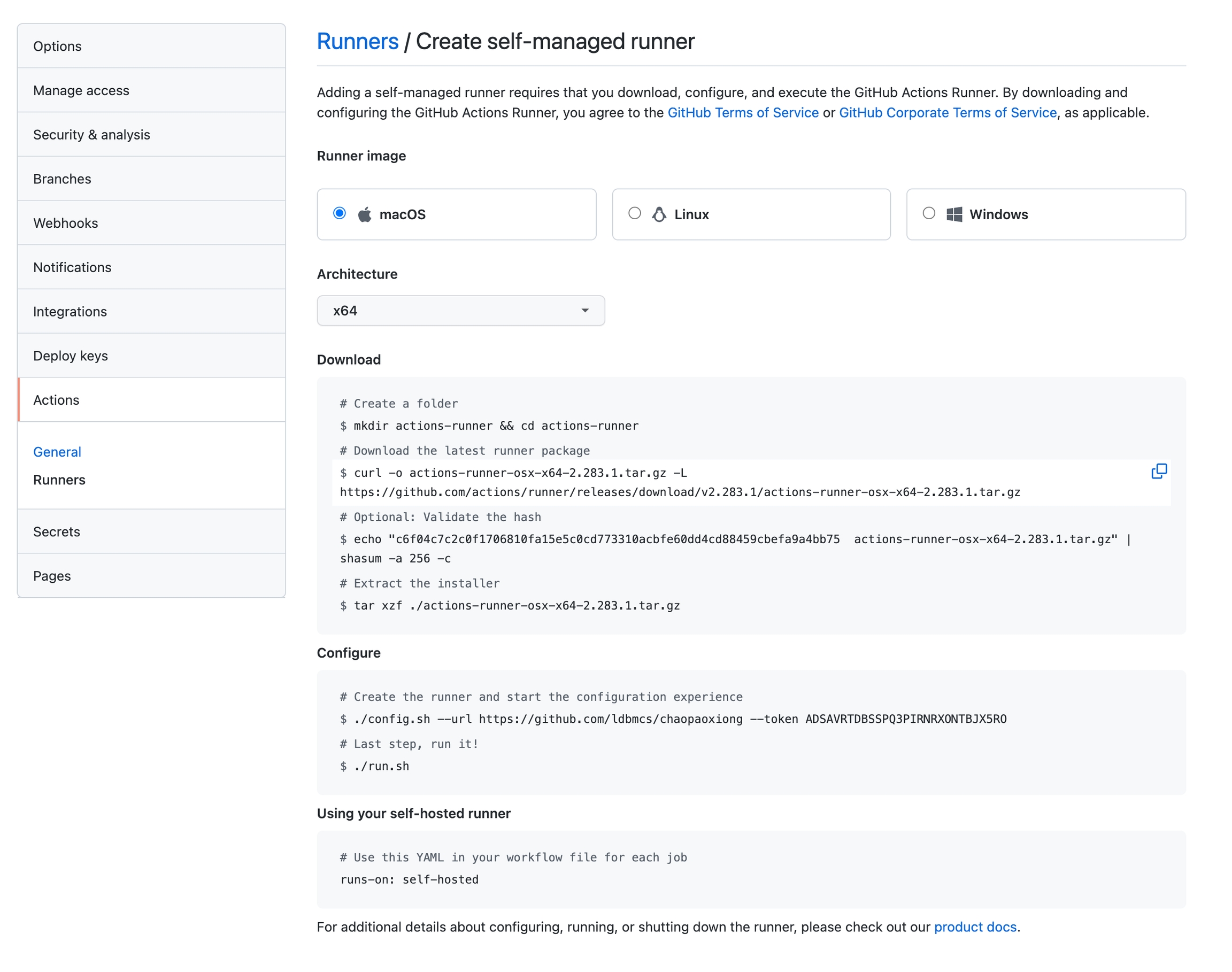 我们可以将服务器添加到单个仓库中。如果要将自托管的运行器添加到用户仓库,您必须是仓库所有者。对于组织仓库,您必须是组织所有者或拥有该仓库管理员的权限。