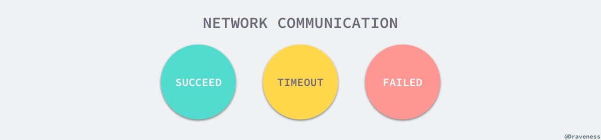 每一次确定的响应都需要这次请求在一个往返以及被调用节点中正确处理,流量既不能被中间代理丢包,也不能由于目标节点的错误导致无法发出响应,只有在同时满足了这两个条件的情况下,我们才能得到确定的响应结果。对于节点来说,这次请求返回成功还是失败都比较好处理,因为只要有确定的结果,网络请求这种通信方式与进程间通信或者方法调用这些更可靠的途径在处理上都没有太多的区别,但是在通信的过程中出现其他的问题时就比较棘手了。