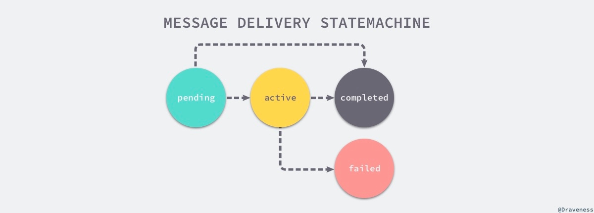 使用序列号确实能够保证消息状态的一致,但是却需要在消息投递时额外增加字段,这样消费者才能在投递出现问题时进行处理,除了这种方式之外,我们也可以通过状态机的方式保证数据的一致性,每一个资源都有相应的状态迁移事件,这些事件其实就是一个个消息(或操作),它们能够修改资源的状态: