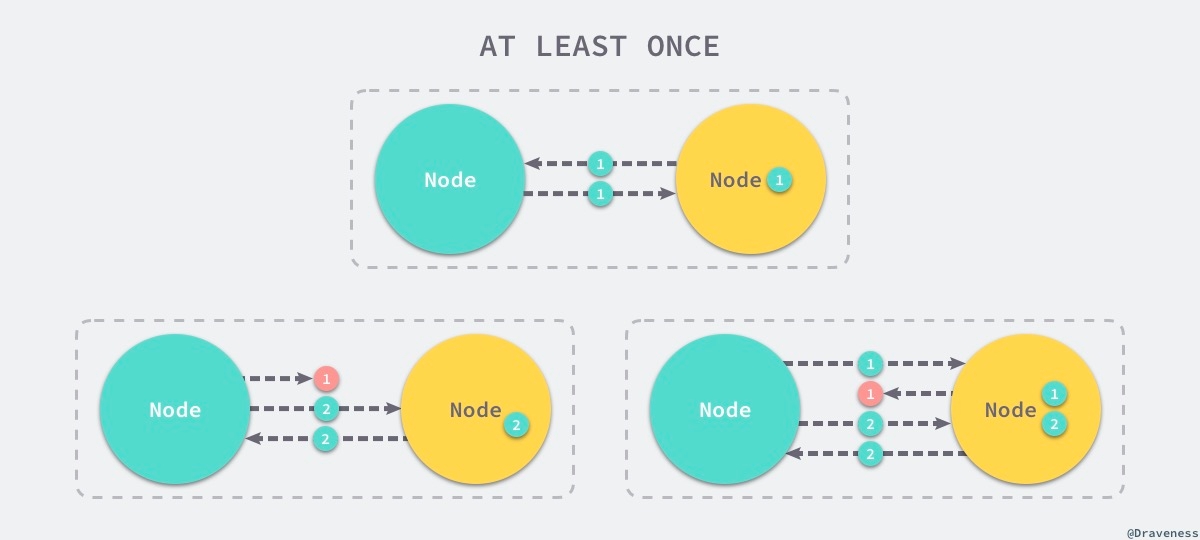 无论该请求是否发送给了接受者,发送者都不会重新发送这条消息;这其实就是最最基本的消息投递语义,然而消息可能由于网络或者节点的故障出现丢失。