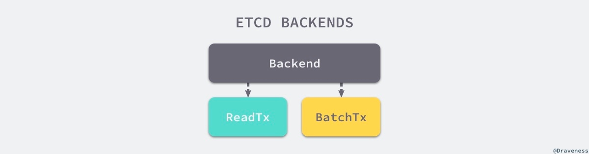 对于上层来说,backend 其实只是对底层存储的一个抽象,很多时候并不会直接跟它打交道,往往都是使用它持有的 ReadTx 和 BatchTx 与数据库进行交互。