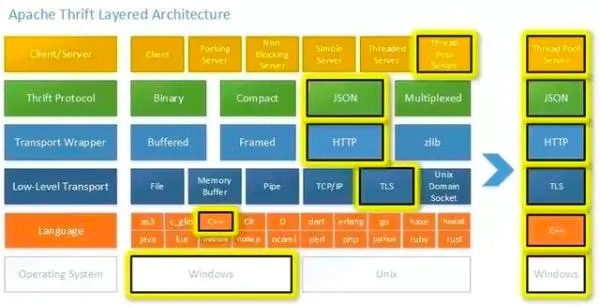 从这张图上可以看出 Thrift RPC 框架的特性。
