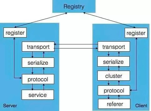 register:用来和注册中心交互,包括注册服务、订阅服务、服务变更通知、服务心跳发送等功能。protocol:用来进行 RPC 服务的描述和 RPC 服务的配置管理,这一层还可以添加不同功能的 filter 用来完成统计、并发限制等功能。serialize:将 RPC 请求中的参数、结果等对象进行序列化与反序列化。transport:用来进行远程通信,默认使用 Netty NIO 的 TCP 长链接方式。cluster:请求时会根据不同的高可用与负载均衡策略选择一个可用的 Server 发起远程调用。