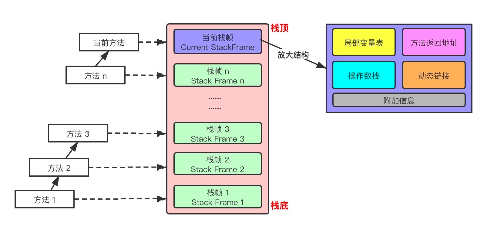 JVM 直接对虚拟机栈的操作只有两个:每个方法执行,伴随着入栈(进栈/压栈),方法执行结束出栈。