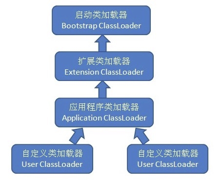 由开发人员开发的应用程序都是由这三种类加载器相互配合进行加载的,如果有必要,还可以加入自己定义的类加载器。这些类加载器的关系一般如下图所示: