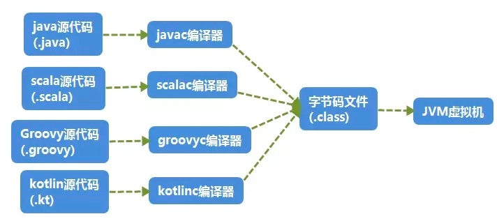 JVM也不再只支持Java,由此衍生出了许多基于JVM的编程语言,如Groovy, Scala, Koltin等等。