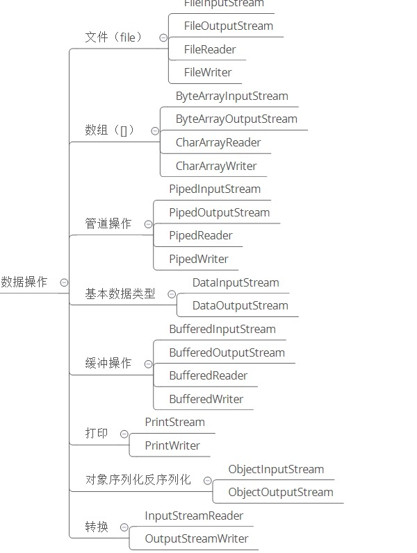 从数据来源或者说是操作对象角度看,IO 类可以分为: