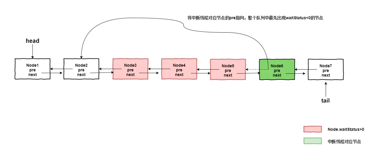 跳过当前节点之前已经取消的节点(我们已经知道在Node.waitStatus的枚举中,只有CANCELLED 大于0 )