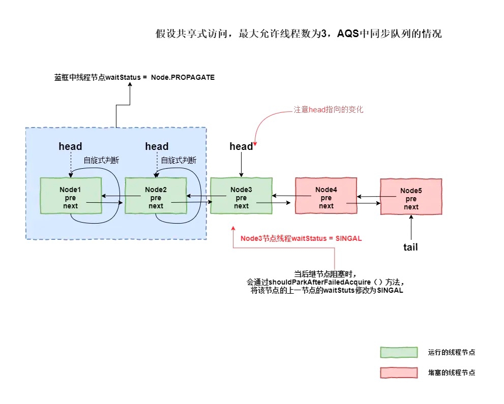 从上图中,我们可以得知在共享式的同步队列中,如果存在堵塞节点,