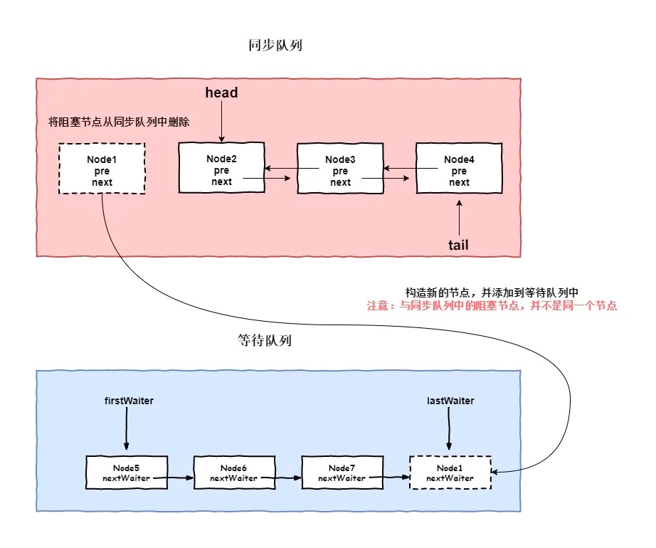 整体流程其实不算太复杂,大家只需要注意,当我们将等待队列中的线程节点加入到同步队列之后,才会唤醒线程。