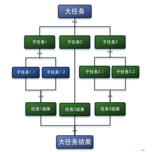 Fork/Join 框架是 Java7 提供了的一个用于并行执行任务的框架, 是一个把大任务分割成若干个小任务,最终汇总每个小任务结果后得到大任务结果的框架。