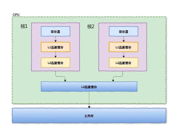 在物理计算机中CPU为了提高处理速度,添加了高速缓存与CPU乱序执行。