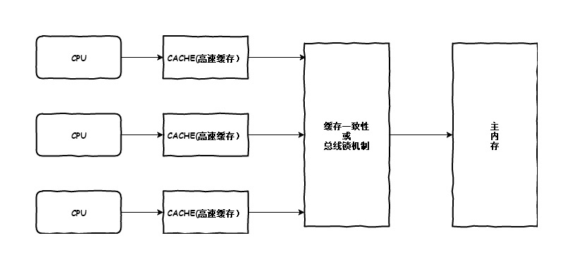 虽然高速缓缓冲提高了CPU(处理器)处理数据的速度问题。在多线程中运行就会有问题了。在多核CPU中,每条线程可能运行于不同的CPU中,因此每个线程运行时有自己的高速缓存(对单核CPU来说,其实也会出现这种问题,只不过是以线程调度的形式来分别执行的)。这时CPU缓存中的值可能和缓存中的值不一样,这就会出现缓存不一致的问题。为了解决该问题。物理机算计提供了两种方案来解决该问题。具体如下图所示: