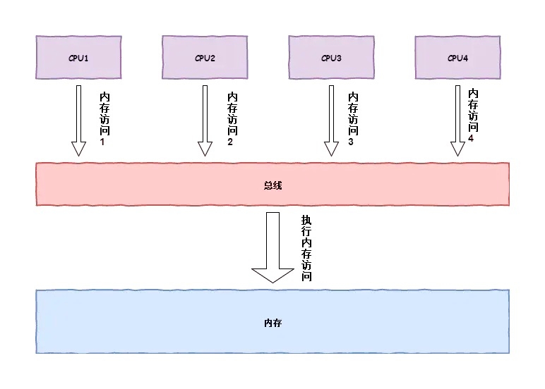 在早期的CPU当中,是通过在总线上加LOCK#锁的形式来解决缓存不一致的问题。因为CPU和其他部件进行通信都是通过总线来进行的,如果对总线加LOCK#锁的话,也就是说阻塞了其他CPU对其他部件访问(如内存),从而使得只能有一个CPU能使用这个变量的内存。在总线上发出了LCOK#锁的信号,那么只有等待这段代码完全执行完毕之后,其他CPU才能从其内存读取变量,然后进行相应的操作。这样就解决了缓存不一致的问题。