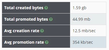 接下来是对象统计,Total Created Bytes表示的是创建的字节总数,Total promoted bytes表示的是晋升的字节总数,Avg creation rate表示的是平均创建字节率,Avg promotion rate表示平均的晋升率。