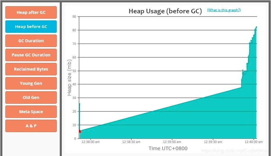 第二部分是Heap before GC,这是GC前堆的使用率,可以看出随着程序的运行,堆使用率越来越高,堆被对象占用的内存越来越大。
