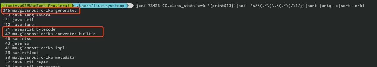 gperftools 是 Google 开发的一款非常实用的工具集,它的原理是在 Java 应用程序运行时,当调用 malloc 时换用它的 libtcmalloc.so,这样就能对内存分配情况做一些统计。我们使用 gperftools 来追踪分配内存的命令。如下图所示,通过 gperftools 发现 Java_java_util_zip_Inflater_init 比较可疑。