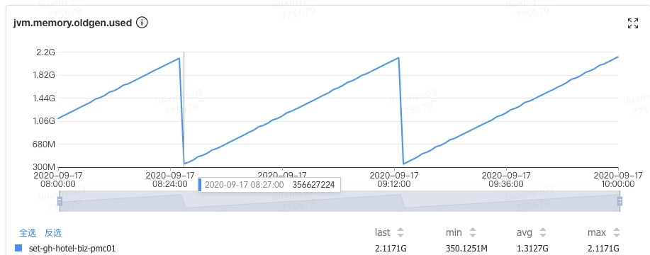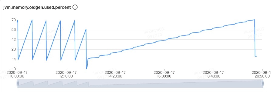 Concurrent Mode Failure: CMS GC 运行期间,Old 区预留的空间不足以分配给新的对象,此时收集器会发生退化,严重影响 GC 性能,下面的一个案例即为这种场景。