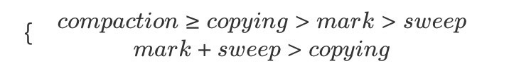 把 mark、sweep、compaction、copying 这几种动作的耗时放在一起看,大致有这样的关系: