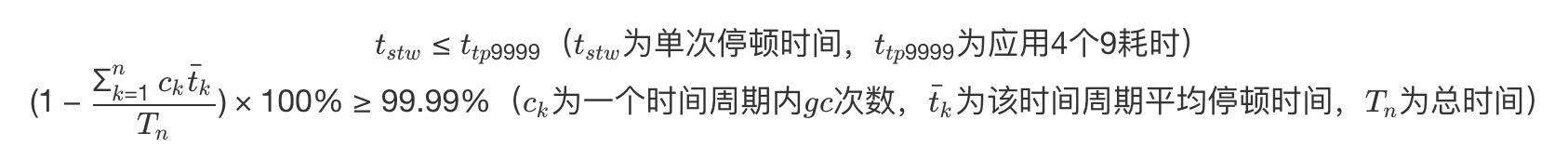 目前各大互联网公司的系统基本都更追求低延时,避免一次 GC 停顿的时间过长对用户体验造成损失,衡量指标需要结合一下应用服务的 SLA,主要如下两点来判断: