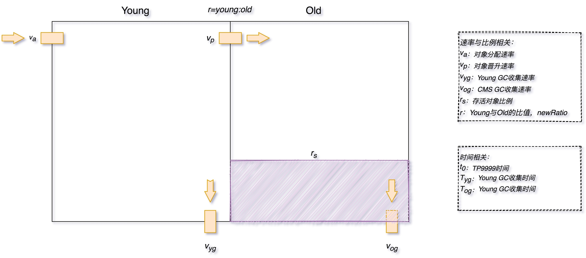 制定标准: 这块内容其实非常重要,但大部分系统都是缺失的,笔者过往面试的同学中只有不到一成的同学能给出自己的系统 GC 标准到底什么样,其他的都是用的统一指标模板,缺少预见性,具体指标制定可以参考 3.1 中的内容,需要结合应用系统的 TP9999 时间和延迟、吞吐量等设定具体的指标,而不是被问题驱动。