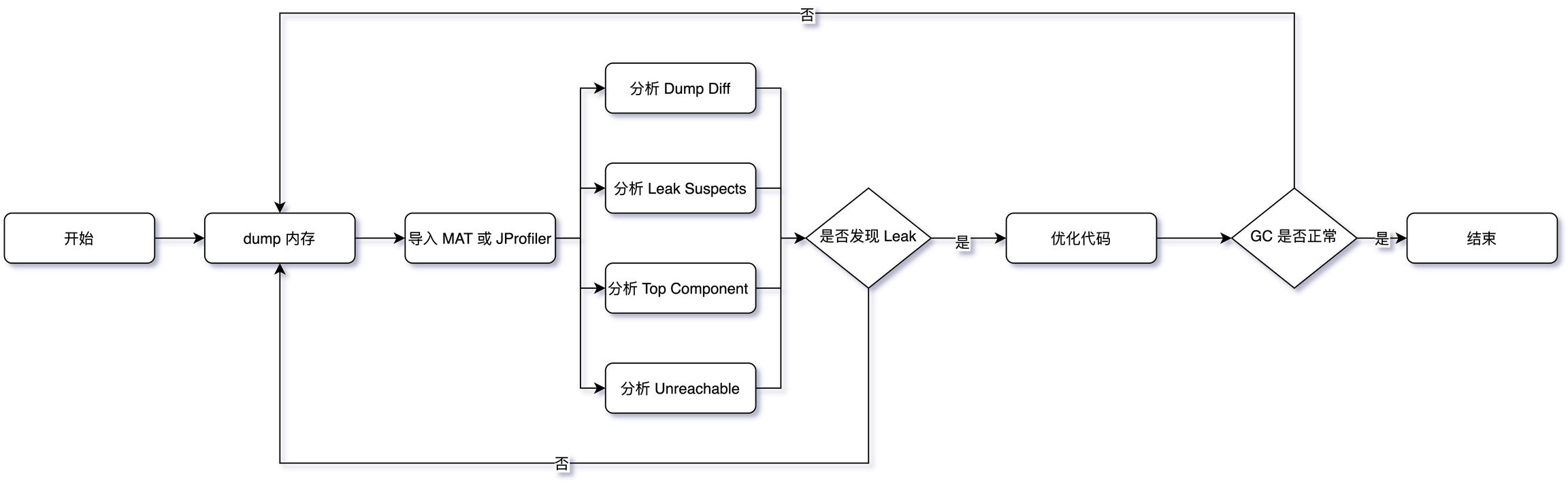 下图为整体 GC 问题普适的处理流程,重点的地方下面会单独标注,其他的基本都是标准处理流程,此处不再赘述,最后在整个问题都处理完之后有条件的话建议做一下复盘。