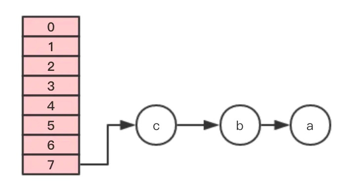 在内部,HashMap使用一个Entry数组保存key、value数据,当一对key、value被加入时,会通过一个hash算法得到数组的下标index,算法很简单,根据key的hash值,对数组的大小取模 hash & (length-1),并把结果插入数组该位置,如果该位置上已经有元素了,就说明存在hash冲突,这样会在index位置生成链表。