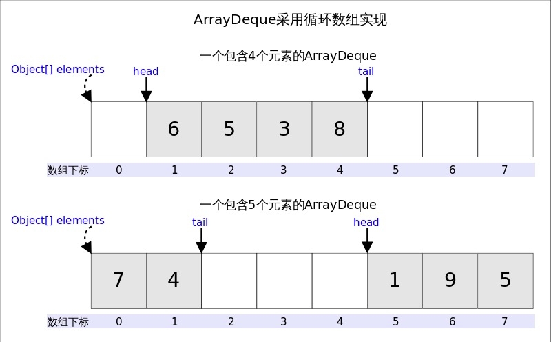 ArrayDeque和LinkedList是Deque的两个通用实现,由于官方更推荐使用AarryDeque用作栈和队列,加之上一篇已经讲解过LinkedList,本文将着重讲解ArrayDeque的具体实现。