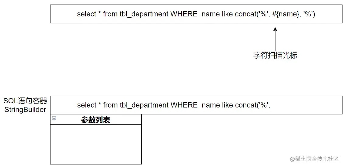 }注意它用的是 StringJoiner 而不是 StringBuilder ,其实之前的版本中 MyBatis 还真的是用 StringBuilder 来拼接 SQL 的,只是新版本的 jdk 提供了更好用的 StringJoiner ,MyBatis 就选择了它而已。StringJoiner 可以在构造时传入一个分隔符,这样每次拼接字符串时,StringJoiner 都会自动拼接一个分隔符,正好 MyBatis 在解析动态 SQL 时,每截取出来一段拼接时,都要先拼接一个空格,所以上面我们可以看到 StringJoiner 的构造时,就传入了一个空格作为分隔符。