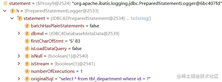但是怎么打印呢?这个难度有点大,因为通过 Invocation 取到的 Statement 是一个被 MyBatis 代理过的对象: