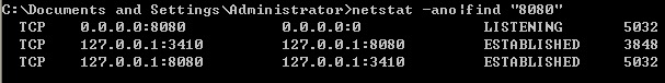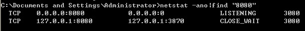 从堆栈信息可以判断,服务端已经监控到客户端强制关闭了连接,下面我们看下服务端是否已经释放了连接句柄,再次执行 netstat 命令,执行结果如下: