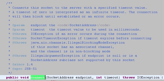 从上面的接口定义可以看出,NIO 类库并没有现成的连接超时接口供用户直接使用,如果要在 NIO 编程中支持连接超时,往往需要 NIO 框架或者用户自己封装实现。