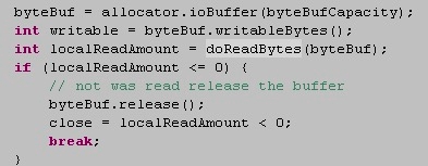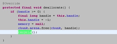 为了防止因为用户遗漏导致内存泄漏,Netty 在 Pipe line 的尾 Handler 中自动对内存进行释放,相关代码如下: