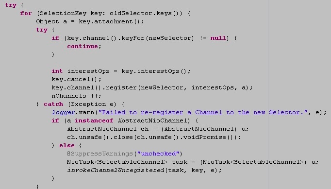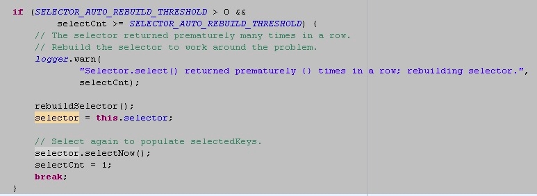 一旦检测发生该 BUG,则重建 Selector,代码如下:
