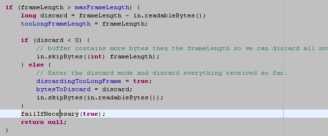Netty 提供了编解码框架,因此对于解码缓冲区的上限保护就显得非常重要。下面,我们看下 Netty 是如何对缓冲区进行上限保护的: