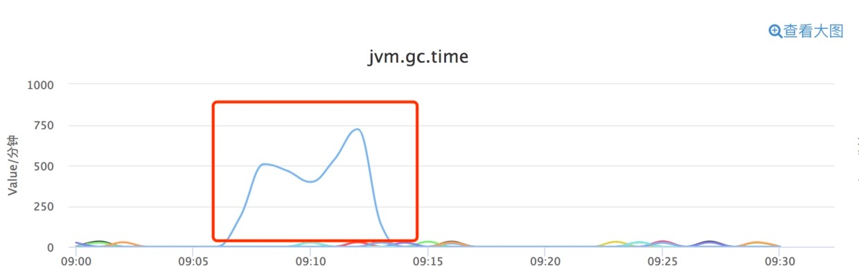 某台机器在同一时间点爆发 GC(垃圾回收),而且在同一时间,JVM 线程阻塞。