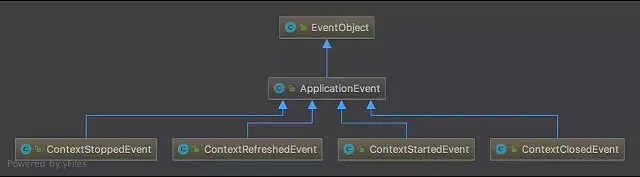 Spring 中默认存在以下事件,他们都是对 ApplicationContextEvent 的实现(继承自ApplicationContextEvent):