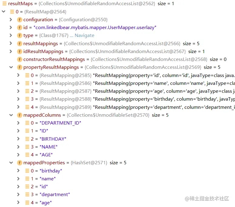 }可以看到,这个处理的大体思路,跟处理 resultType 的基本相仿呀,都是获取属性 → 从 ResultSet 中取值 → 反射设置值。