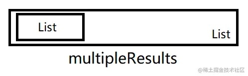 }诶?这是为何呢?为什么还要检查一下 multipleResults 的集合大小呢?是这样,MyBatis 本身支持对存储过程的处理,这个 multipleResults 本身就是考虑到可能一个存储过程中会返回多个结果集,所以这里有一个兜底处理,如果返回的结果集封装不止一个,那就说明我们走存储过程了。这个描述比较抽象,我们可以用一个很简单的图来解释一下: